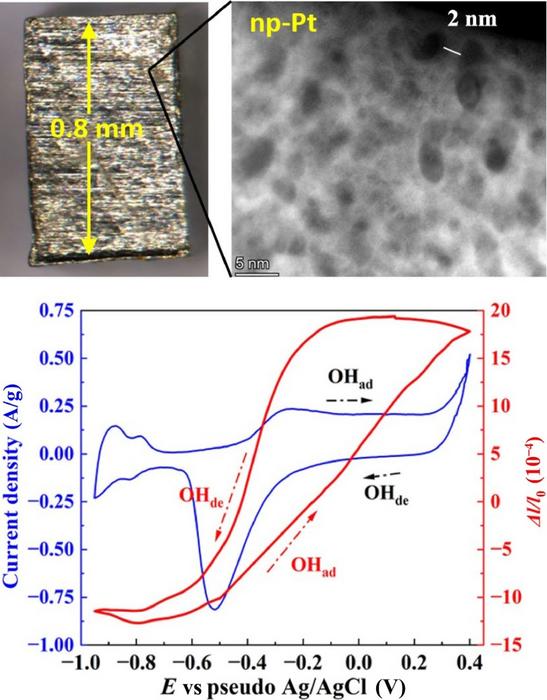 What was most unique about the study was how the researchers manufactured the np-Pt material. “The main breakthrough in this research is that we obtained bulk np-Pt by electrochemical dealloying. Past studies on np-Pt were all based on nanoparticles or films that were prepared using more expensive commercial Pt particles. So the easy and cheap method of dealloying increases the practicality of np-Pt and makes further research possible,” said Sun.