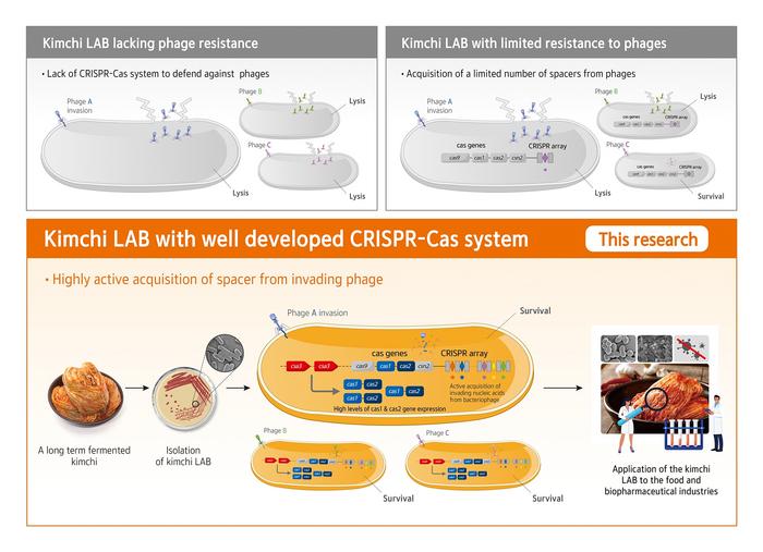 Researchers at the World Institute of Kimchi have isolated lactic acid bacteria (LAB) strains with high levels of resistance to phages from kimchi fermented at low temperatures for a long period of time. They have also identified the defense mechanism of the LAB strains against phages, viruses that infect and replicate within bacteria.