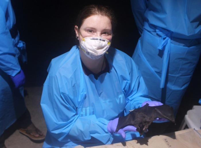 PAIGE VAN DE VUURST, A PH.D. STUDENT IN TRANSLATIONAL BIOLOGY, MEDICINE, AND HEALTH, CONDUCTS FIELD RESEARCH ON VAMPIRE BATS IN COLOMBIA THIS SUMMER.