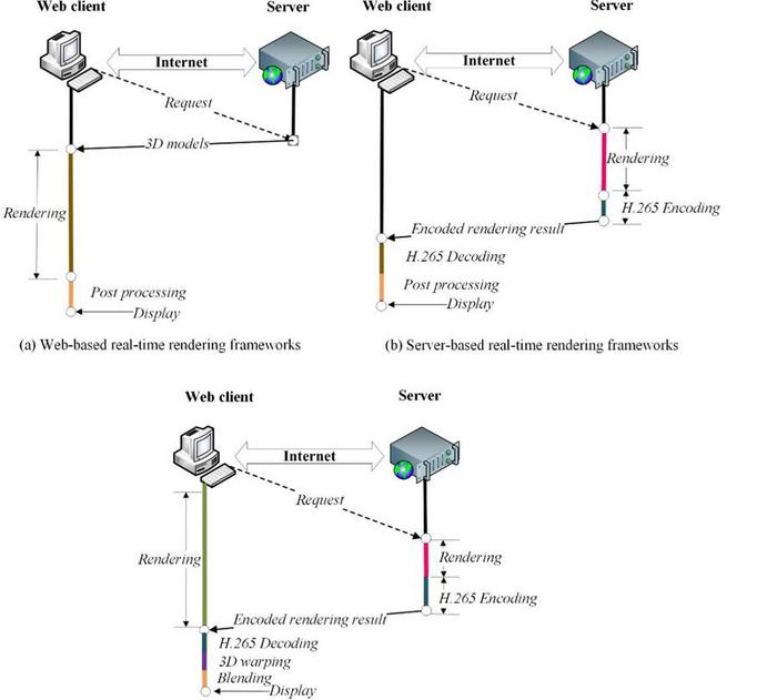 ALL REAL-TIME RENDERING FRAMEWORKS ARE CLASSIFIED INTO THREE CATEGORIES, NAMELY WEB-BASED REAL-TIMERENDERING FRAMEWORKS, SERVER-BASED REAL-TIME RENDERING FRAMEWORKS, AND END-CLOUD COLLABORATIVE REAL-TIMERENDERING FRAMEWORKS.