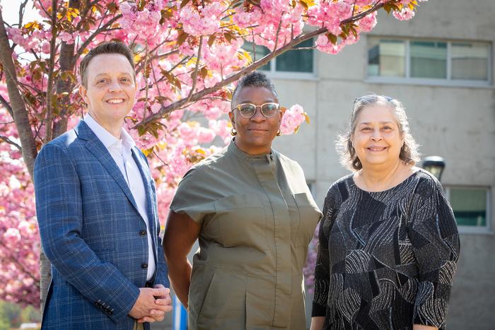 FROM LEFT: THADDEUS “TED” WATERS AND PAMELA REED, BOTH OF THE JACOBS SCHOOL OF MEDICINE AND BIOMEDICAL SCIENCES, AND PAULINE MENDOLA FROM THE SCHOOL OF PUBLIC HEALTH AND HEALTH PROFESSIONS. THEY ARE AMONG THE UB INVESTIGATORS ON A CLINICAL TRIAL THAT WILL TEST TWO HEALTH CARE DELIVERY MODELS' EFFECTIVENESS IN TREATING POSTPARTUM HYPERTENSION.