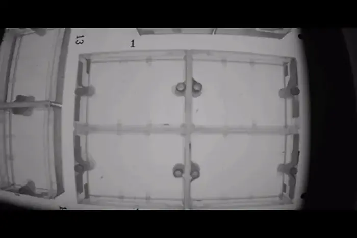 FOUR CAVEFISH RESPONDING TO ALANINE. THE FIRST 30 SECONDS SHOW THE BASELINE BEHAVIOUR OF THE FISH, SWIMMING AROUND AND ALONG THE WALLS OF THE TEST BOX. THE NEXT 30 SECONDS (AFTER BLACK INTERRUPTION) SHOW THE BEHAVIOURAL RESPONSES OF THESE FOUR INDIVIDUALS TO ALANINE, WHICH WAS PERFUSED ON THE LEFT SIDE. THE FOUR CAVEFISH MOSTLY SHOW STRONG ATTRACTIVE RESPONSES AND INTENSE FORAGING/SEARCHING BEHAVIOUR AROUND THE TUBE WHERE THE ODORANT WAS PERFUSED. THESE BEHAVIOURAL TESTS WERE PERFORMED IN THE DARK; THIS IS AN INFRARED MOVIE.