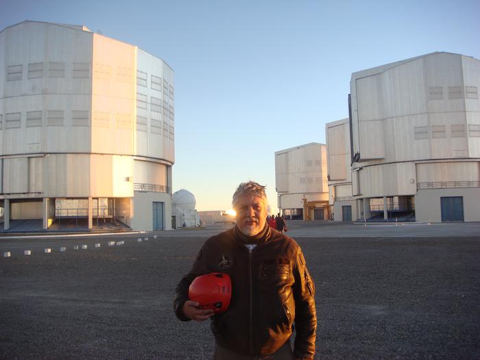 Researcher Pedro Machado, from IA and Ciências ULisboa, next to the four telescopes of the VLT (ESO), at the Paranal Observatory, Chile.