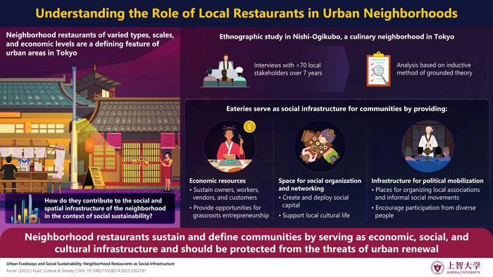 In summary, these findings suggest that small neighborhood eateries, especially local and independently owned ones, can be instrumental in fostering social sustainability and cohesion. Protecting them from the threats of urbanization is, therefore, essential. “It is important for Tokyo urban planners and citizen groups to understand how neighborhood eateries serve as social infrastructure, particularly, the role of independent restaurants in supporting the community economically, socially, and politically. This is because with rapid urban redevelopment, aging, and the rise of corporate restaurant chains, Tokyo is at a risk of losing this social infrastructure,” adds Prof. Farrer.