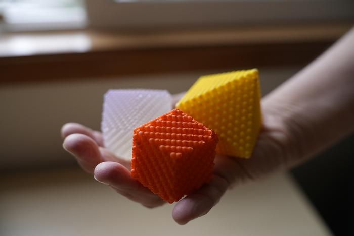 “There are lots more complex ways to slice it, but these are the three fundamental ways to do it, by making them either six, eight, or twelve sides―cubes, octahedra, or rhombic dodecahedra. It was a natural choice to focus on those three for the article.”