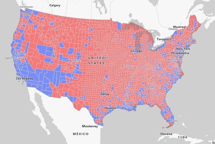 A U.S. MAP SHOWS COUNTIES WHERE RESIDENTS COULD (BLUE) OR COULD NOT (PINK) RECEIVE LOCAL-SPECIFIC INFORMATION ABOUT ENVIRONMENTAL JUSTICE ISSUES.