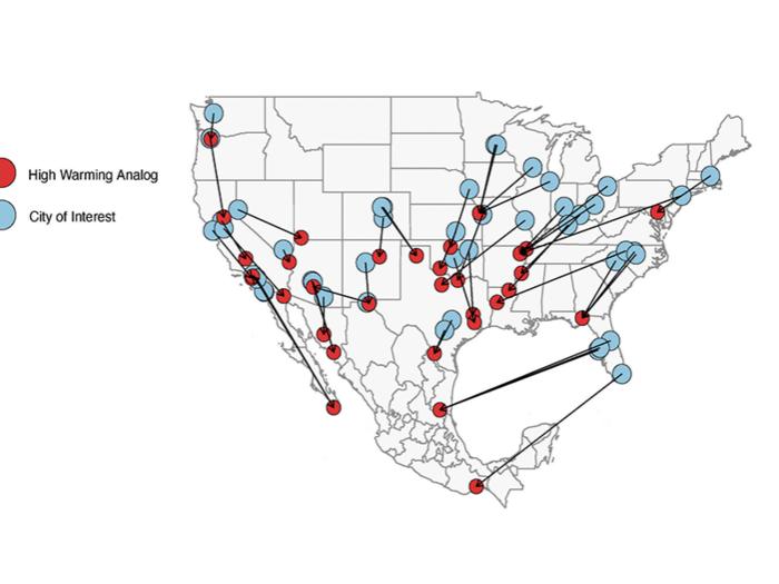 AN INTERNATIONAL TEAM OF RESEARCHERS USED CONTEMPORARY CLIMATE ANALOGS AND MULTI-OUTCOME MACHINE LEARNING TO MATCH HIGH-WARMING ANALOGS AND CITIES OF INTEREST.