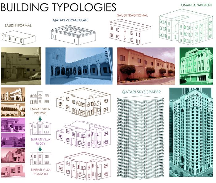 THESE ARE SOME OF THE EXAMPLES OF BUILDING TYPES THE RESEARCHERS EXAMINED AS THEY PUT TOGETHER ENERGY AND MATERIAL USE ASSESSMENTS OF THE ARAB GULF STATES.