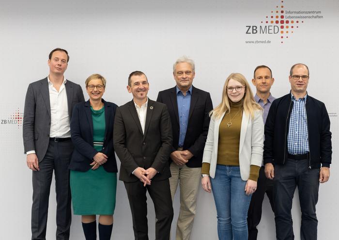 FROM LEFT TO RIGHT: RONALD BUITENHUIS (HEAD OF INSTITUTIONAL PARTNERSHIPS OF FRONTIERS AND LEAD NEGOTIATOR ON BEHALF OF FRONTIERS), PETRA LABRIGA (HEAD OF STRATEGIC LICENCE MANAGEMENT OF ZB MED AND LEAD NEGOTIATOR ON BEHALF OF ZB MED), DR FRANCK VAZQUEZ (DIRECTOR OF PARTNERSHIPS OF FRONTIERS), PROF DR REBHOLZ-SCHUHMANN (SCIENTIFIC DIRECTOR OF ZB MED), LEA SCHINDLER (LICENSING ASSISTANCE, STRATEGIC LICENSE MANAGEMENT OF ZB MED), FRANK HELLWIG (INSTITUTIONAL PARTNERSHIPS DEVELOPMENT MANAGER OF FRONTIERS AND CO-NEGOTIATOR ON BEHALF OF FRONTIERS), JONATHAN LEHMANN (MANAGER CONSORTIUM LICENSES OF ZB MED).