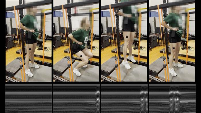 A WEARABLE ULTRASOUND MONITOR CAN PROVIDE INSIGHT INTO DYNAMIC MUSCLE MOVEMENT DURING ACTIVITIES LIKE JUMPING.