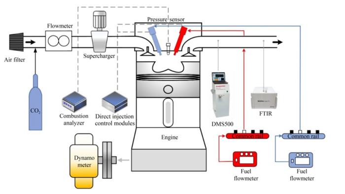 A research group of Yong QIAN from Shanghai Jiao Tong University proposes a new methodology to improve the problems of high MPRR and combustion deterioration of the GCI mode at high loads. The new methodology called double main-injection (DMI) strategy was that two direct injectors were used for the simultaneously main-injection. By comparing DMI strategy with the single main-injection (SMI) strategy and conventional diesel combustion at high loads, they found that ① the simultaneous main-injection of the two direct injectors can achieve a rapid fuel supply and control of fuel stratification in the DMI mode, ② exhaust gas recirculation has a significant effect on the combustion and emissions of the DMI mode, ③ the DMI strategy achieves a highly efficient and stable combustion of the GCI mode, ④ the DMI strategy can alleviate the requirement of the GCI