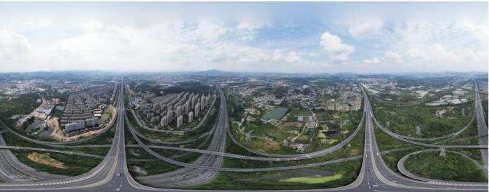 PANORAMIC AERIAL PHOTOGRAPHY OF THE QILIN TRANSPORTATION HUB IN SUBURBAN NANJING, WHERE THE THREE-DIMENSIONAL TECHNOLOGY RECORDED THE CONSTRUCTED TERRAIN AND SURFACE FEATURES IN TWO DIMENSIONS. THE DISTORTION IN THE IMAGE MAKES THE LANDSCAPE UNFAMILIAR TO US, WHO CAN UNEXPECTEDLY AND STRONGLY PERCEIVE THE FRAGMENTED LANDSCAPE AT THE URBAN FRINGE AND ITS MAJOR CAUSE OF TRANSPORTATION INFRASTRUCTURE.