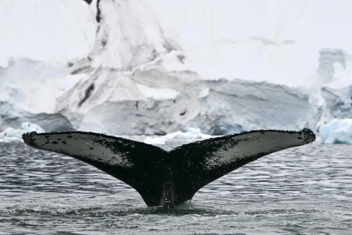 View of the tail of a Humpback whale at the Gerlache Strait, which separates the Palmer Archipelago from the Antarctic Peninsula, in Antarctica.--AFP photos