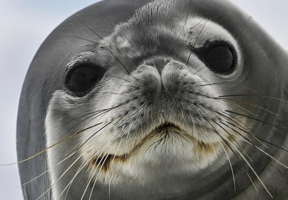 View of a seal at the Gerlache Strait, which separates the Palmer Archipelago from the Antarctic Peninsula.