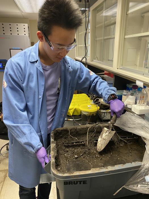 “The number of devices in the Internet of Things (IoT) is constantly growing,” said Northwestern alumnus Bill Yen, who led the work. “If we imagine a future with trillions of these devices, we cannot build every one of them out of lithium, heavy metals and toxins that are dangerous to the environment. We need to find alternatives that can provide low amounts of energy to power a decentralized network of devices. In a search for solutions, we looked to soil microbial fuel cells, which use special microbes to break down soil and use that low amount of energy to power sensors. As long as there is organic carbon in the soil for the microbes to break down, the fuel cell can potentially last forever.”