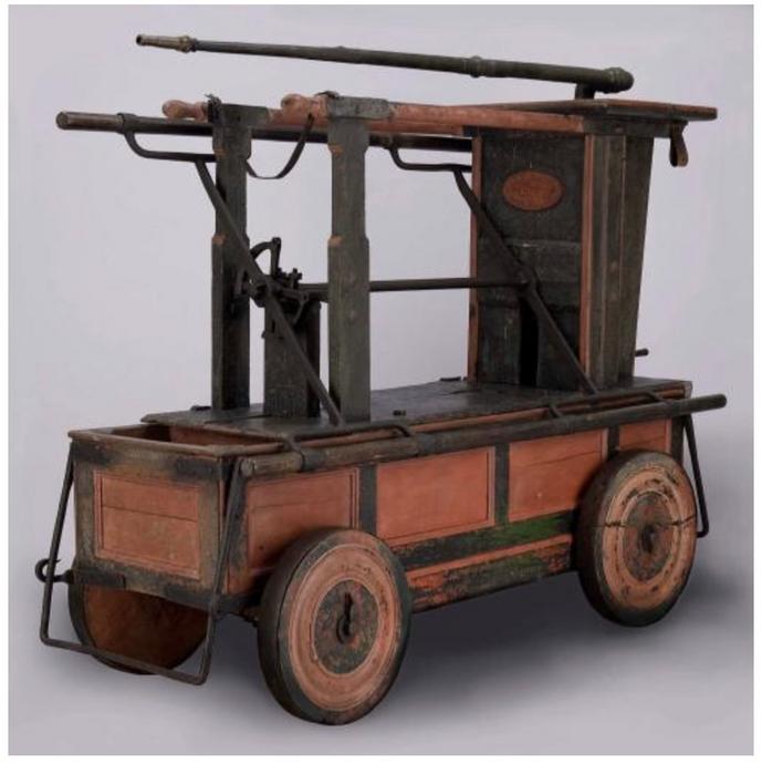 One landmark advancement was the invention “sucking worms,” leather hoses attached to manually operated pumps. Then came the Windkessel, a chamber in the bottom of a wooden wagon that compressed air to pump water continuously through a hose, creating a steady stream.