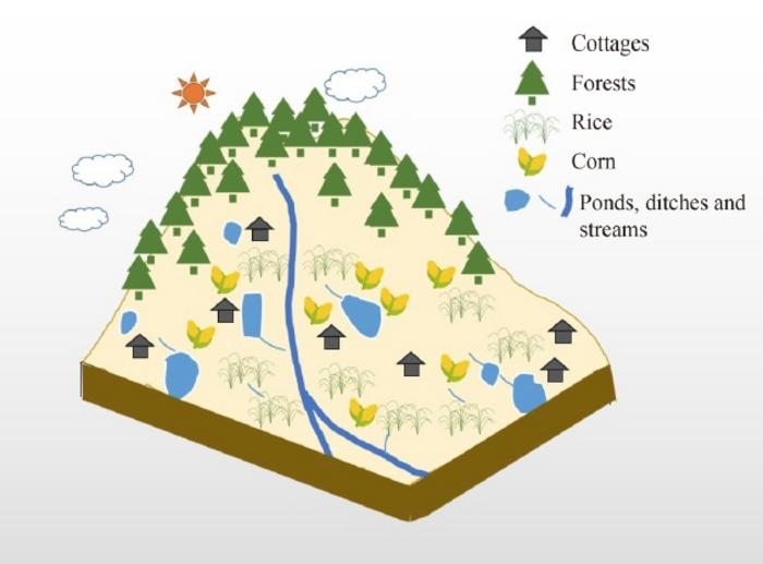 Globally, non-point source pollution is an important source of water quality deterioration in rivers and lakes. A ditch-pond system, consisting of ditches and ponds, is considered to be similar to free-surface wetlands, linking pollution sources to the receiving water bodies. The ditch-pond system includes vegetation, microorganisms and sediment, which can slow down the flow velocity and promote the precipitation of particulate matter carried by running water. At the same time, ditch and pond systems reduces nitrogen and phosphorus concentrations, and those of other nutrients entering the downstream water by means of plant absorption, sediment adsorption and microbial degradation, so as to reduce agricultural non-point source pollution. As an important farming area in southern China, the Three Gorges Reservoir area covers a wide area of hills and serious soil erosion, which further exacerbates the problem of agricultural non-point source pollution. In China, ponds are mainly distributed in the eastern and southern regions. However, most of the studies on ditches and ponds have been conducted in the lowland areas, and there are few studies with field observations in upland areas. What kind of function the ditch-pond system plays in the water environment in the mountain catchment is worth studying deeply.
