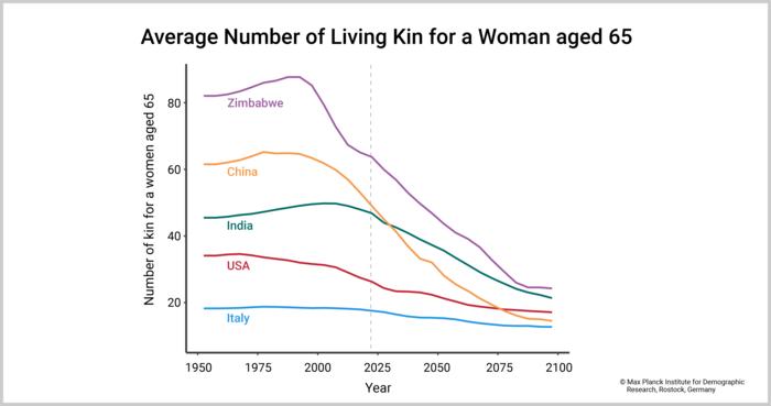 Projections of kinship are critical in the context of rapidly aging populations, as smaller birth cohorts must increasingly care for older adults who have fewer or no relatives. "Our findings confirm that the availability of kinship resources is declining worldwide. As the age gap between individuals and their relatives widens, people will have family networks that are not just smaller, but also older. Consider the case of grandparents and great-grandparents, who are expected to be in greater supply in the future. While this could theoretically help ease the burden of childcare for parents, these (great-)grandparents may actually need care themselves”.
