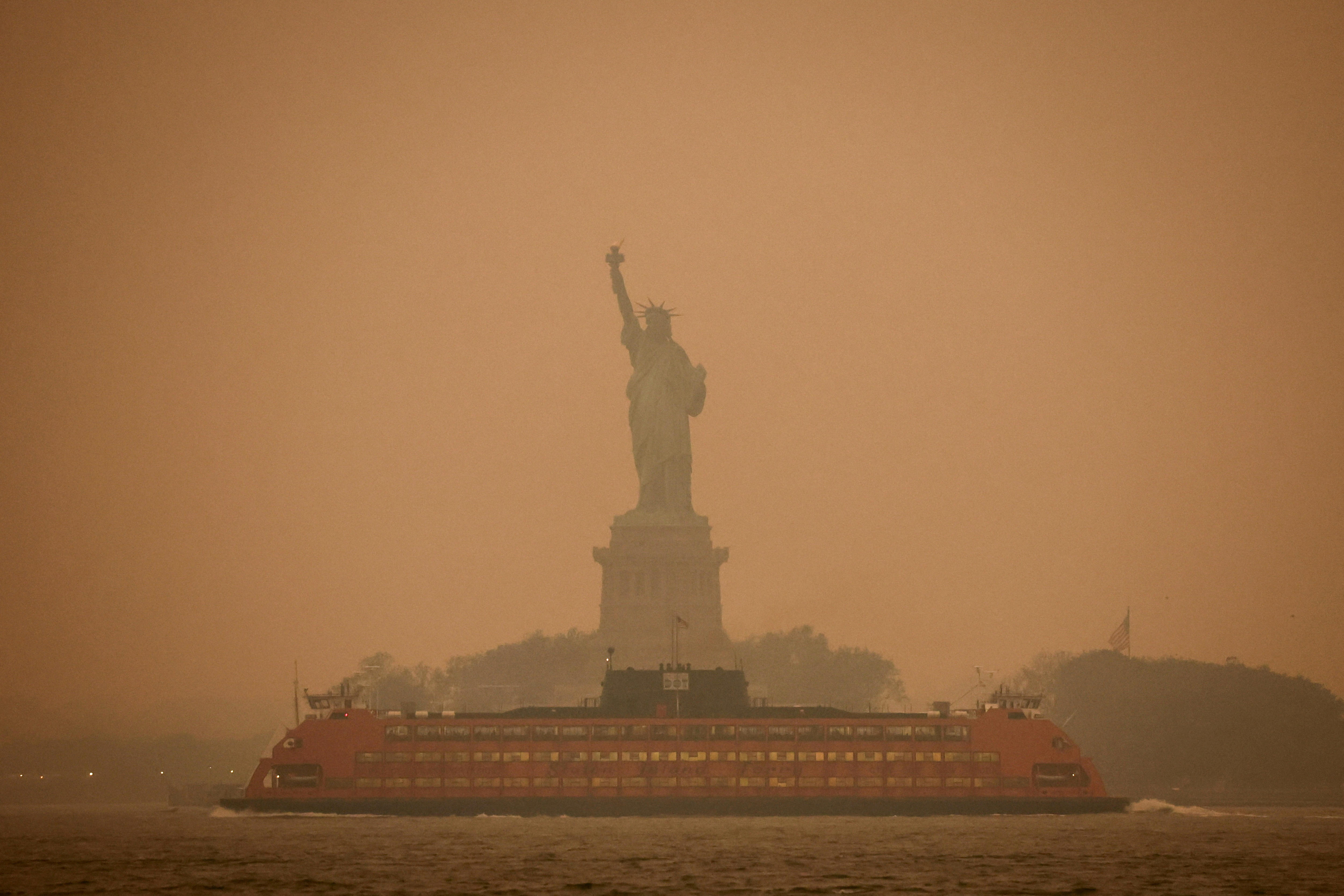 The Statue of Liberty was covered in haze and smoke caused by wildfires in Canada.(REUTERS: Amr Alfiky)