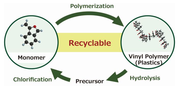 Chemical recycling of widely used vinyl polymers (VPs) is one of the key technologies required for realizing a sustainable society. In this regard, a team of researchers from Shinshu University have recently reported a new chemical process that facilitates the depolymerization of cyclic styrene-based VPs, resulting in the recovery of a monomer precursor. This highly efficient chemical recycling system can help with effective resource circulation and the development of new plastic recycling technologies.