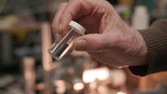 A vial of graphene grown in a furnace at de Heer's lab at Georgia Tech.