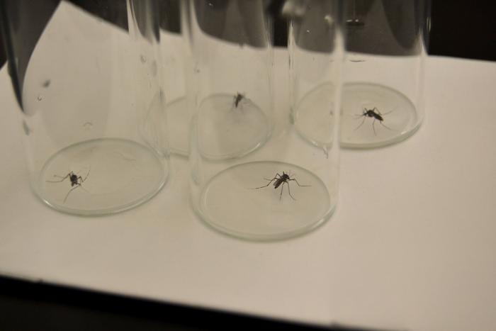 VIALS CONTAINING THE GLOBALLY INVASIVE TIGER MOSQUITO AEDES ALBOPICTUS.