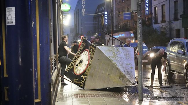 Ireland’s meteorological service, Met Eireann, has also introduced amber wind warnings for Sunday, which will escalate into a red storm warning for coastal areas in the north of the country on Monday.