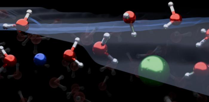 The researchers set out to study how water molecules are affected by the distribution of ions at the exact point where air and water meet. Traditionally, this has been done with a technique called vibrational sum-frequency generation (VSFG). With this laser radiation technique, it is possible to measure molecular vibrations directly at these key interfaces. However, although the strength of the signals can be measured, the technique does not measure whether the signals are positive or negative, which has made it difficult to interpret findings in the past. Additionally, using experimental data alone can give ambiguous results.