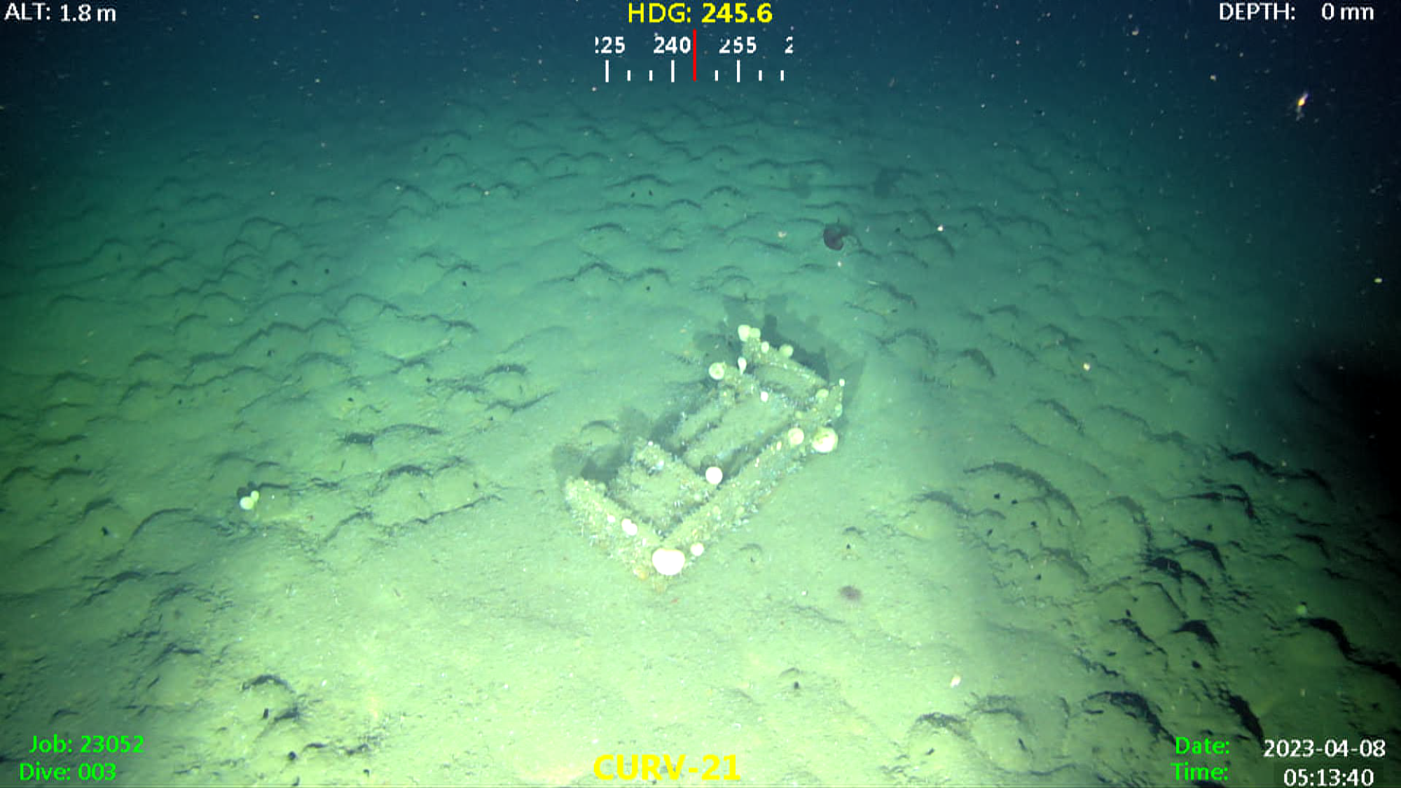 Among the munitions documented were Hedgehog and Mark 9 depth charges — explosives that were typically dropped from warships to attack submarines. Researchers also identified Mark 1 smoke floats — chemical smoke munitions that were dropped by ships to mark locations or to conceal their movements.