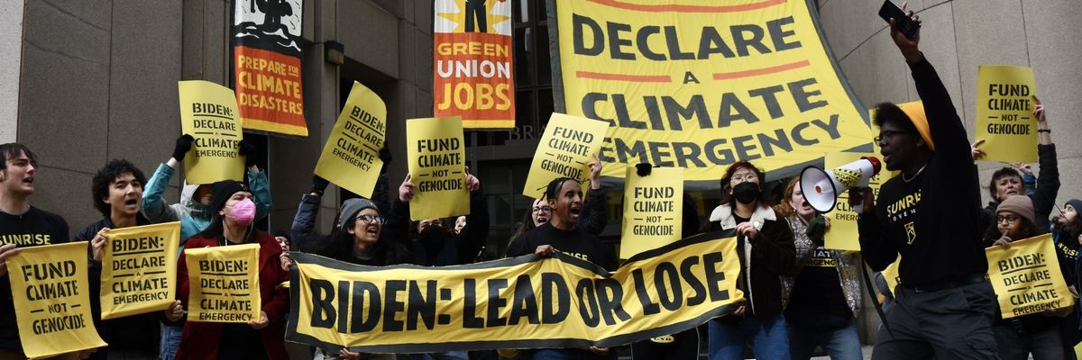 "Biden can't build renewables on Monday, approve fossil fuels on Tuesday, and then claim to be climate president. That's not how science works, and young voters know it," said Sunrise campaign director Kidus Girma in a statement Thursday. "President Biden must declare a climate emergency and go all-out to stop the climate crisis."