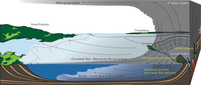 THE ERUPTION AND VOLCANIC MATERIAL SEDIMENTATION PROCESSES OF GIANT CALDERA ERUPTIONS ARE NOT WELL UNDERSTOOD, MAKING IT ALSO DIFFICULT TO ESTIMATE THEIR SIZE. KOBE UNIVERSITY RESEARCHERS USED SEISMIC REFLECTION SURVEYS TO VISUALIZE THE SEDIMENTARY STRUCTURE AND ANALYZED COLLECTED SEDIMENT SAMPLES, ENABLING THEM TO OBTAIN IMPORTANT INFORMATION ON THE DISTRIBUTION, VOLUME, AND TRANSPORT MECHANISMS OF THE EJECTA.