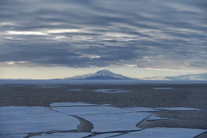 SEA ICE IN THE ANTARCTIC ROSS SEA, ON FEBRUARY 4 OF 2018. PHOTO COURTESY OF JIAN LIU.