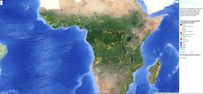 Africa's forested areas – an estimated 14 % of the global forest area – are continuing to decline at an increasing rate – mostly because of human activities to convert forest land for economic purposes. As natural forests are important CO2 and biodiversity reservoirs, this development has a significant impact on climate change and effects the integrity of nature. To intervene in a targeted manner in the interests of climate protection and biodiversity, there has been a lack of sufficiently good data and detailed knowledge of the various forms of subsequent utilisation of deforested areas to track where forest-related conversions are happening and why. This has now been provided by a new study published in the journal Nature Scientific Reports and led by Robert N. Masolele and Johannes Reiche from Wageningen University in the Netherlands, Martin Herold from the GFZ German Research Centre for Geosciences in Potsdam, and their team. They used high-resolution satellite data, which they analysed on the basis of local reference data for 15 different types of land use – from crops such as coffee, cashew and rubber to pastureland and mining – with the help of deep learning methods. This enabled them to create the first high-resolution (accurate to five metres) and continental mapping of land use after deforestation across a wide area of the African continent, including wet and dry forests. This provides an improved basis for enhancing transparency on where commodity expansion leads to deforestation and for underpinning the strategic planning and implementation of deforestation mitigation measures by governments and forest protection agencies – both in Africa and in the EU, where a new EU-regulation aims to establish “deforestation-free supply chains” for products made from certain raw materials.