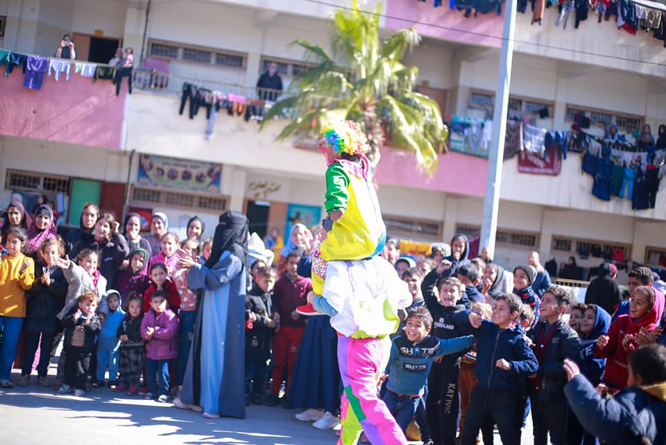 "Imagine Aloosh who, thanks to his skill, is able to move and keep even 1,500 children entertained all at once. He who in these weeks of exodus, displacement and war has become a father for the second time, Maloosh and the other clowns have a joy inside that cannot wait to 'take revenge' on the horrors of the conflict. And that makes us realise,' he continues, 'that it is possible to put on shows even at this moment, in Rafah' while news reports announce the imminent ground operation by the Israeli army and more than 1.4 million refugees press the border with Egypt.