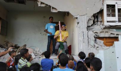 "The meaning of the word peace," he says, "I learnt it from them who, in spite of everything, manage not to hate, to contain their anger, and it is incredible that even this time they have managed to make children and adults smile. They have written to me a couple of times in the last period," he confides, "to tell me that they are alive and, I assume, constantly on the move. I get very short messages telling me that they are in Rafah' and that, although they cannot put on big shows, every now and then they 'manage to gather children and play with them', alleviating their suffering even for a few moments.