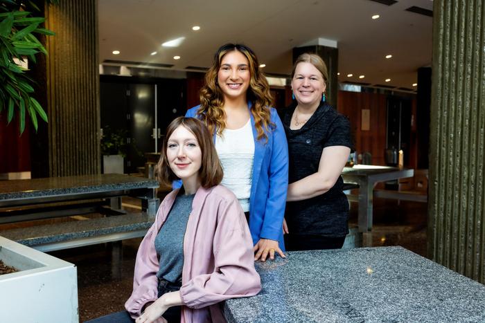 LEFT TO RIGHT: PIES LAB STUDENTS STEPHANIE ECCLES AND MIKAELA GERWING WITH SARAH TURNER