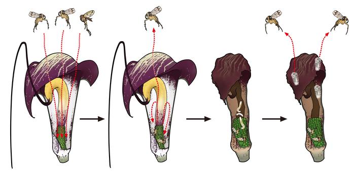 The surprising results are now published in the journal Plants, People, Planet. The Kobe University team found that the main pollinator, a fungus gnat by the name of Leia ishitanii, lays its eggs into the flowers and that the larvae feed on the decaying flowers, developing into adult fungus gnats that emerge after a few weeks. Furthermore, they also sometimes found gnats emerge from flowers without any corpses of members of that species. This suggests that at least some of the insects are actually able to escape the trap. Suetsugu explains, “This finding adds a new dimension to our knowledge of plant-insect interactions, but the most exciting aspect is that even in well-studied fields, there is still much to learn. Nature is full of surprises!”