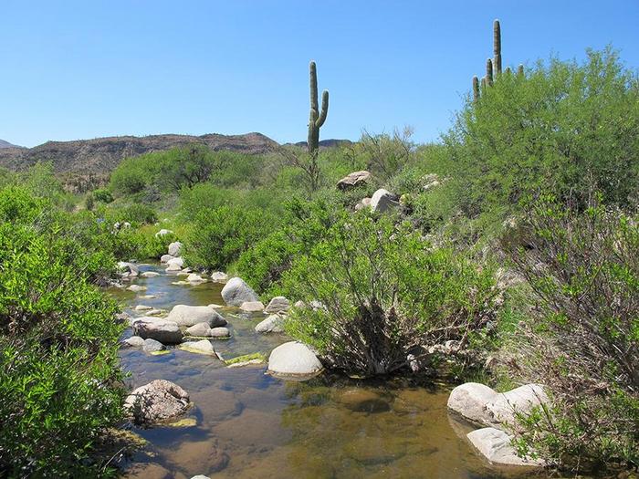 SYCAMORE CREEK FLOWS THROUGH AN ARID LANDSCAPE IN ARIZONA. IT WAS ONE OF THE STREAMS INCLUDED IN THE STUDY ON HOW STREAMS AND FORESTS EXCHANGE ENERGY.
