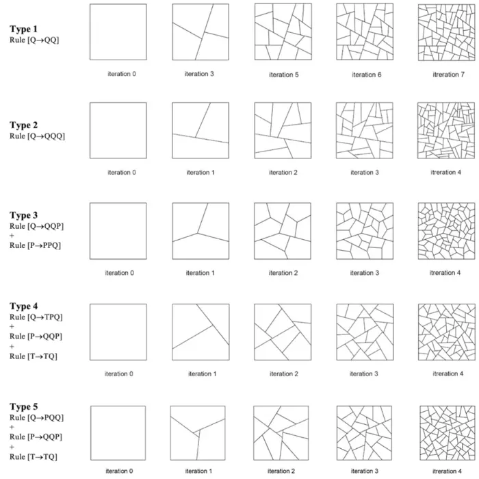 He explains: "Take Type 1  as an example; a square is first divided into two quadrilaterals, and then each quadrilateral is further divided into two quadrilaterals. In each step, the proportions of the subdivided quadrilaterals are different, and this is how the random pattern is created using a simple rule.