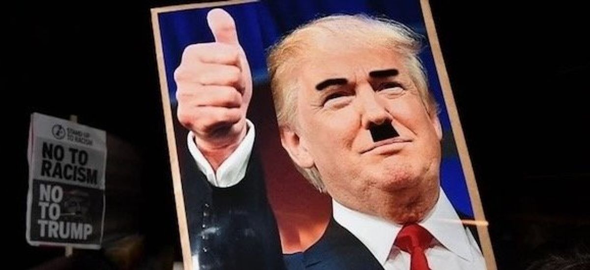 A demonstrator holds a placard showing a picture of U.S. President-elect Donald Trump modified to add a swastika and an Adolf Hitler-style mustache during a protest outside the U.S. Embassy in London November 9, 2016. (Photo: Ben Stansall/AFP via Getty Images)