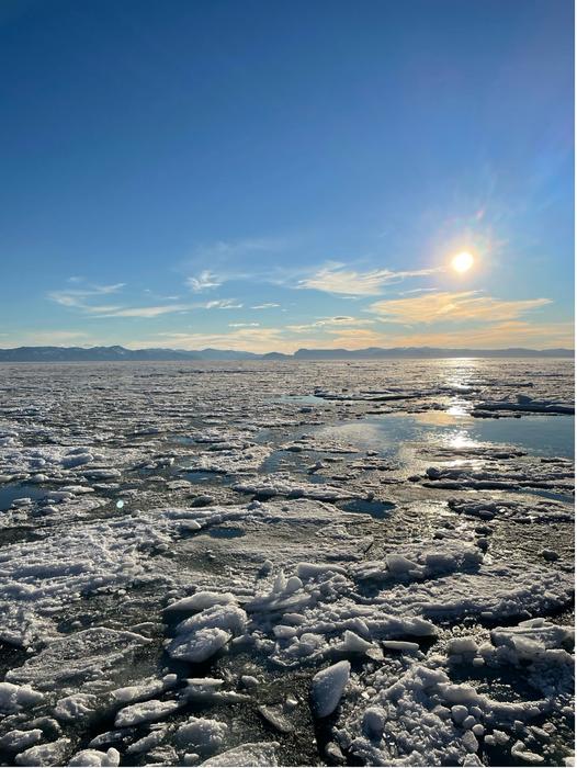 Ice breaking up under a clear blue sky, taken during an ECOTIP project cruise. Photo by Anna Törnroos from Åbo Academy University