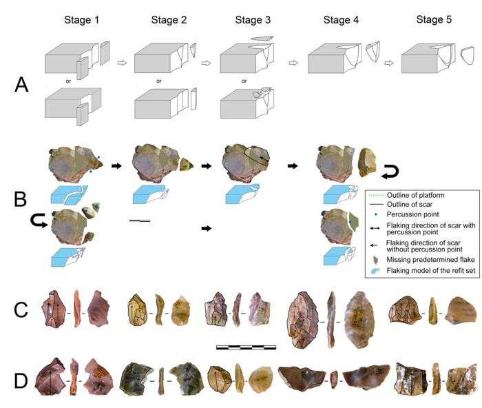 By reconstructing Cenjiawan refit sets from Nihewan basin, the research team discovered organized flaking techniques that aimed at producing slender flakes by core preparation on both the striking platform and flaking surface. The standardized operational process was not only shown by refit sets: Plenty of products detached at each stage of the process, thus provide strong evidence of standardized core preparation.