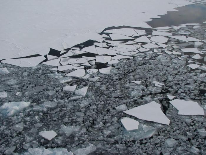 ICE BREAKING UP ON THE SURFACE OF THE ARCTIC OCEAN.