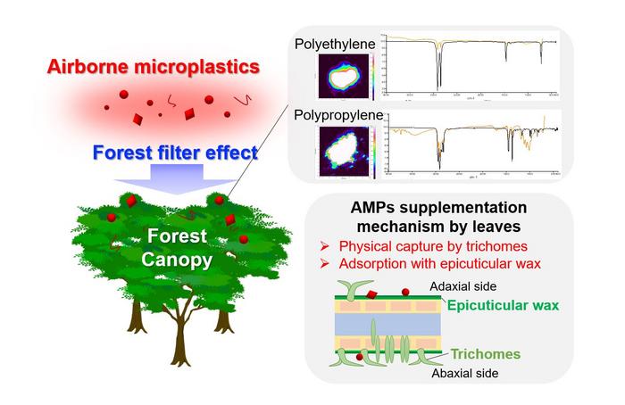 A research group led by Japan Women’s University finds that airborne microplastics adsorb to the epicuticular wax on the surface of forest canopy leaves, and that forests may act as terrestrial sinks for airborne microplastics