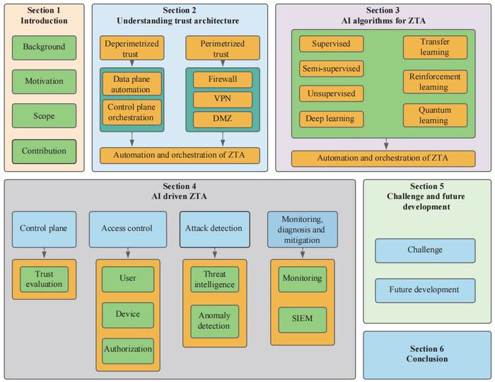 Security teams consider ZTA as an enabler to uphold security in their organization′s networks. In particular, ZTA needs to develop capabilities that orchestrate and learn continuously to secure an environment based on hyper-granular access privileges. ZTA automation and orchestration can relieve security personnel from manually assigning and reassigning access credentials throughout the organization′s network. Moreover, permission changes over ZTA should be orchestrated in minutes, eliminating the friction and annoyance of security procedures for employees and devices. The paper published in Machine Intelligence Research by the team of Prof. Gang Li focuses on the potential of AI algorithms in the automation and orchestration for ZTA components.