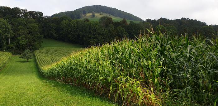 CORN PLANTS IN A FIELD EXPERIMENT NEAR LIESBERG, BASELLAND, SWITZERLAND.