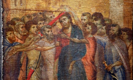 View image in fullscreenThe painting, pictured here before restoration, had lost its original colours due to excessive varnishing, according to restorers. Photograph: Dimitar Dilkoff/AFP/Getty Images