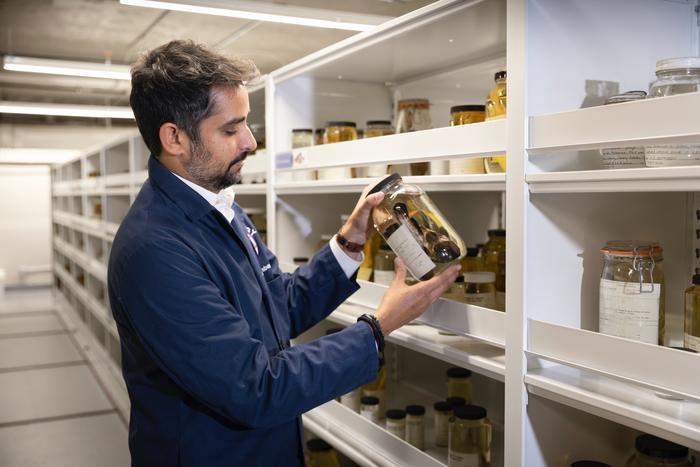 LEAD AUTHOR PROSANTA CHAKRABARTY IN THE FISH COLLECTIONS OF THE LOUISIANA STATE UNIVERSITY MUSEUM OF NATURAL SCIENCE WHERE MANY SPECIMENS FROM THE GULF OF MEXICO ARE HOUSED.