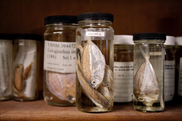 LEAD AUTHOR PROSANTA CHAKRABARTY IN THE FISH COLLECTIONS OF THE LOUISIANA STATE UNIVERSITY MUSEUM OF NATURAL SCIENCE WHERE MANY SPECIMENS FROM THE GULF OF MEXICO ARE HOUSED.