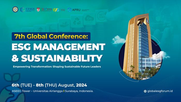 The 7th Global Conference: ESG Management & Sustainability will be held from 6th to 8th August 2024, at Universitas Airlangga in Surabaya, Indonesia